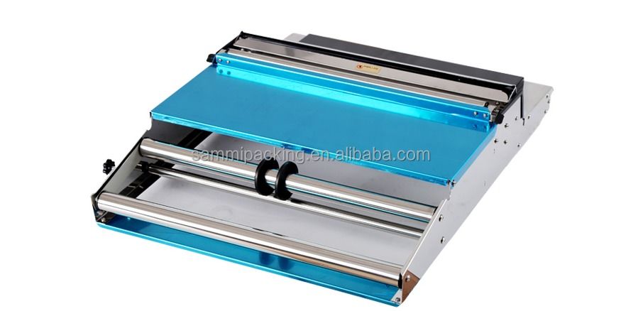* फिल्म को काटने वाले ब्लेड से काटें और उत्पाद को गर्म टेफ्लॉन प्लेट पर सील करें।