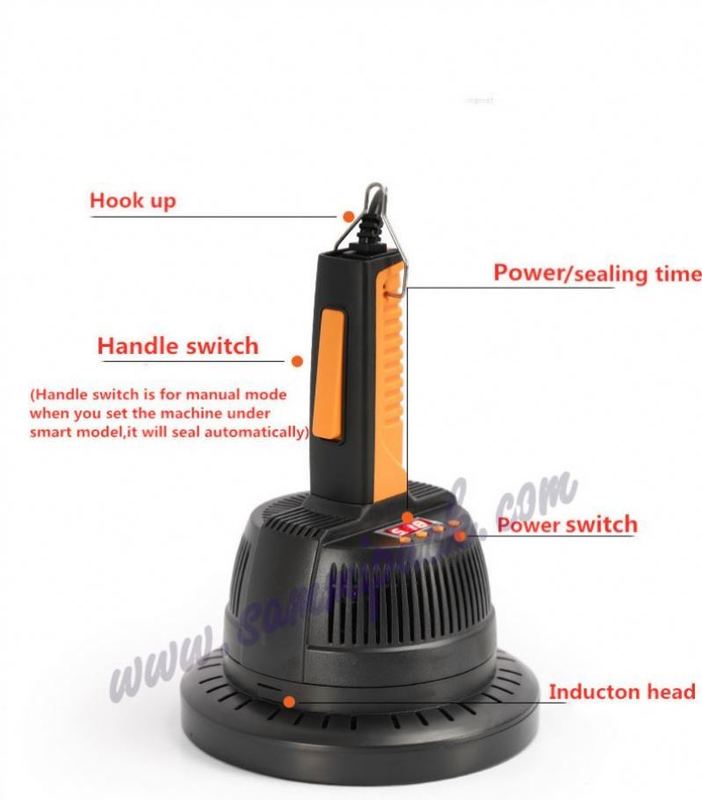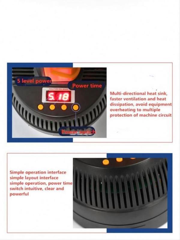 नोटः सामान्य प्रेरण सीलर की तुलना में, यह मशीन बिजली की विफलता के तहत आपके द्वारा सेट किए गए डेटा को याद कर सकती है। ग्रे शेल आंतरिक सर्किट बोराड की सुरक्षा के लिए उच्च गुणवत्ता का है।जब सामान्य प्रेरण सीलर का प्रयोग किया जाता हैलेकिन यह बौद्धिक सील करने वाला लाल बटन को दबाए बिना ही स्वचालित रूप से बोतल को सील कर सकता है।